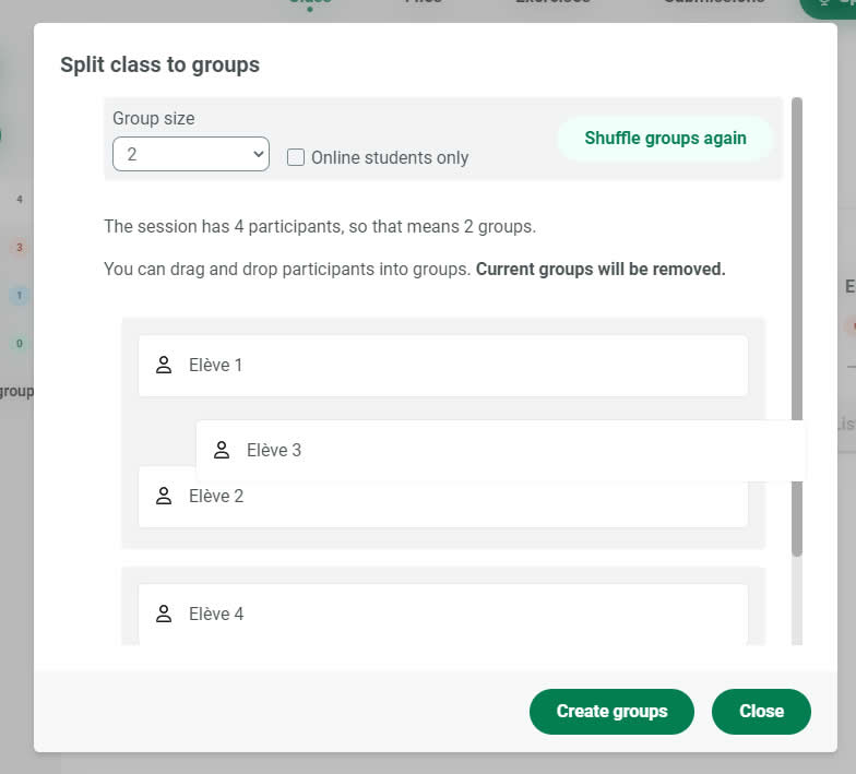 Lorsque les élèves sont répartis en Groupes, vous avez toujours la possibilité de les modifier.
