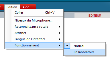 Ouvrez le menu Edition, et changez le mode de Fonctionnement de Normal vers En laboratoire. Ceci est nécessaire pour que Pronounce puisse communiquer avec Pronounce Manager. Sinon, Pronounce fonctionnera de manière individuelle.
