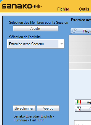 L’activité Exercice avec Contenu est une activité dédiée aux documents MFF, fournis par l’intermédiaire de Sanako ou créés sur mesure par vos soins.