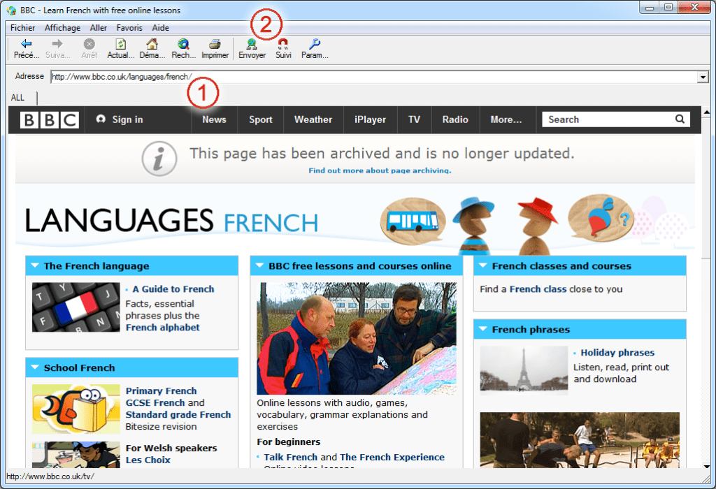 Cliquez sur le menu Favoris pour accéder à la liste des favoris que vous utilisez avec Internet Explorer. Sélectionnez le signet désiré pour gagner du temps.