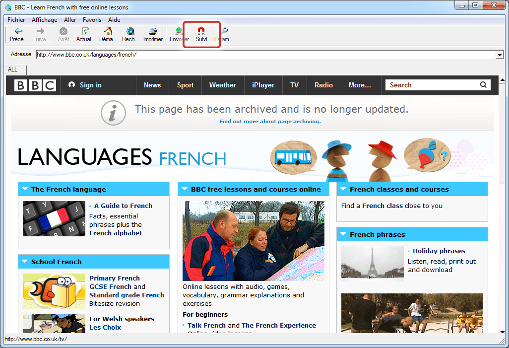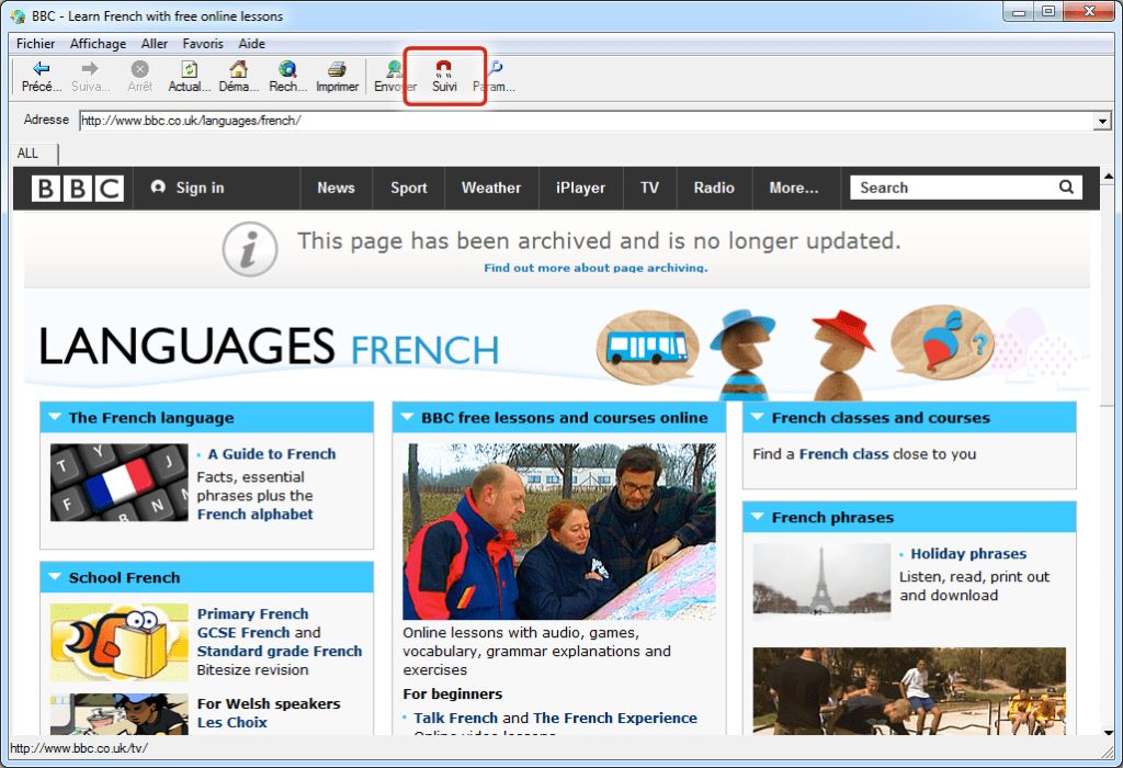 Suivez les instructions données dans la page Imposer une page Internet aux élèves, puis cliquez sur le bouton Suivi comme le montre la capture ci-dessous.