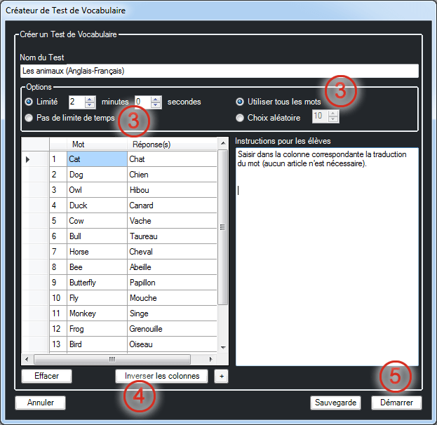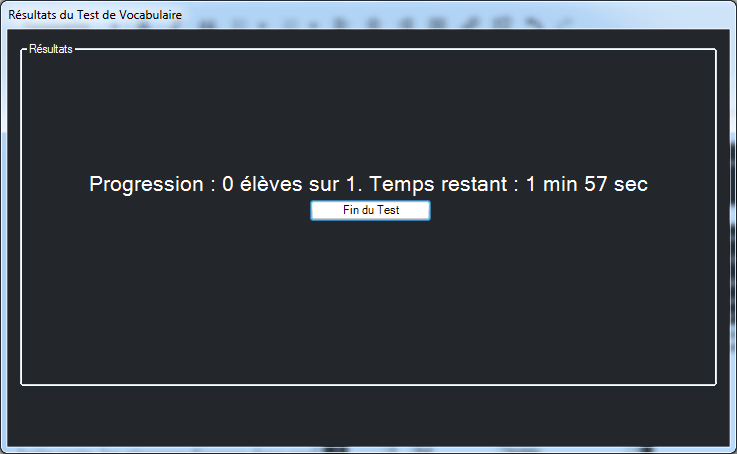 Le professeur peut cliquer sur le bouton Fin du test à tout moment pour mettre un terme à l’activité.