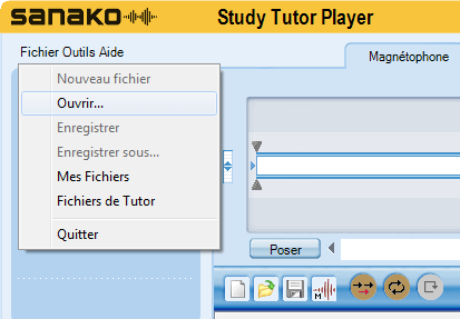 Lancez votre magnétophone Study Tutor Player et, dans le menu Fichier, sélectionner l’option Ouvrir…
