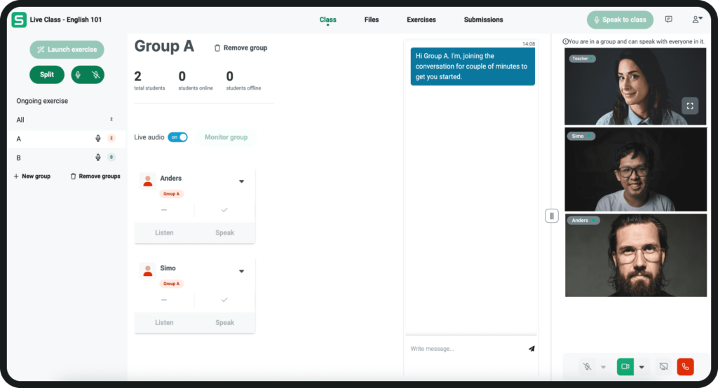 Associez des élèves en paires ou en groupes en fonction de leurs capacités ou créez des groupes aléatoirement pour effectuer des discussions en direct et des jeux de rôle.