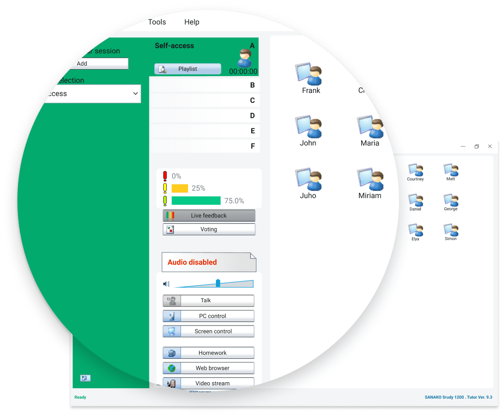Les enseignants utilisent Sanako Study pour augmenter le temps de production orale et de travail actif de chaque élève pendant les cours. Sanako Study est devenue la référence des logiciels de laboratoire de langues en classe.