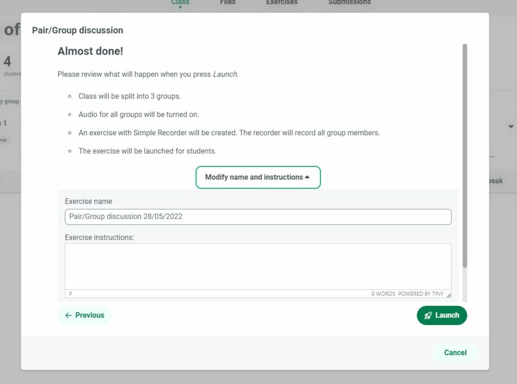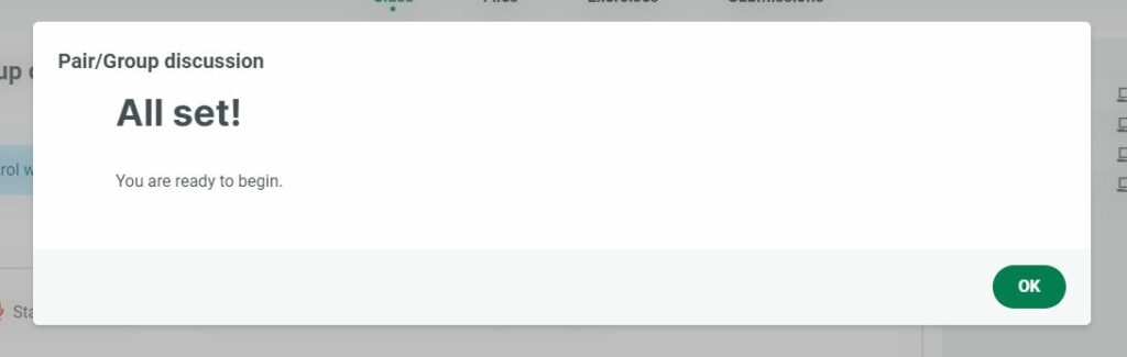 Dans la fenêtre des activités, cliquez sur l’option Pair/Group discussion.