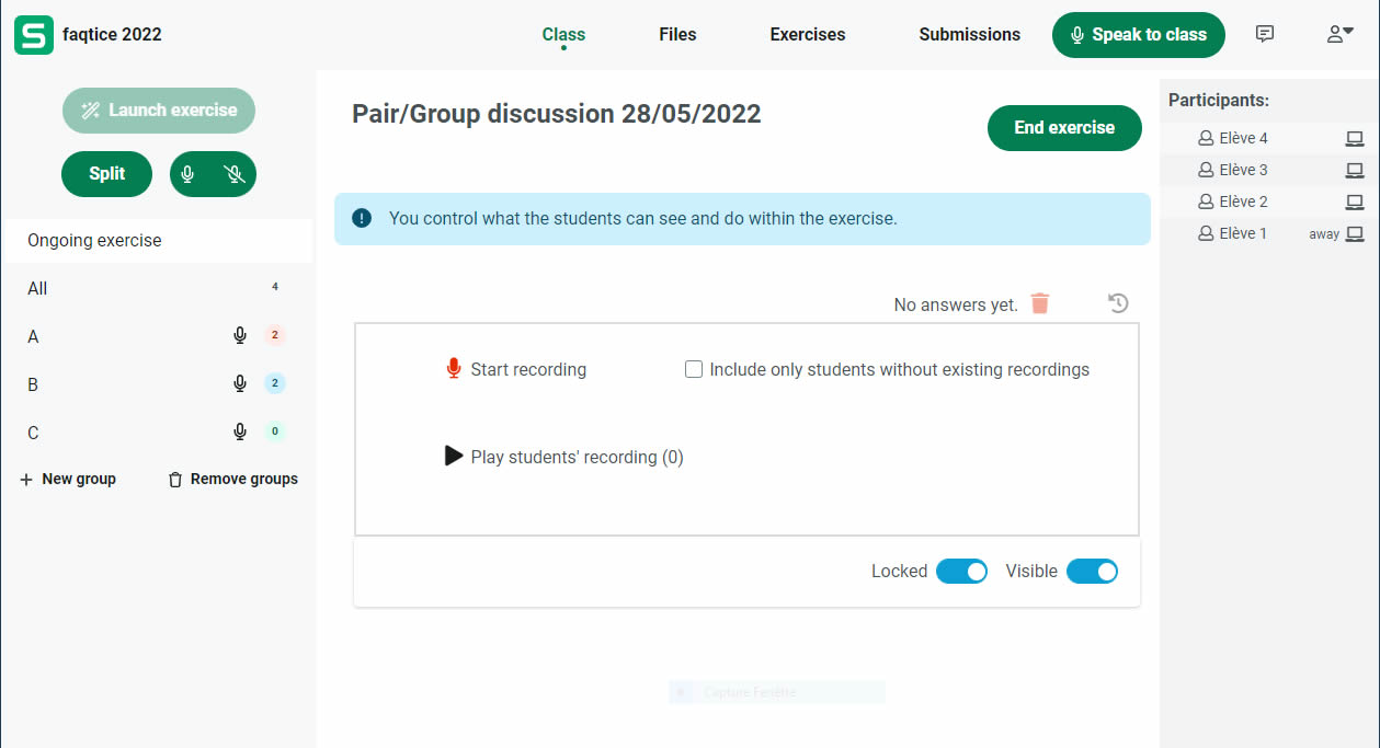 Vous pouvez maintenant contrôler le travail de vos élèves.