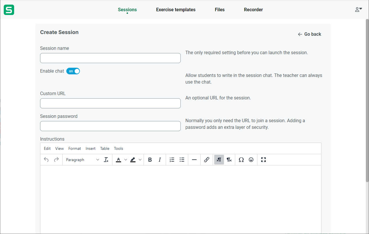 Vous avez la possibllité d’ajouter un mot de passe pour protéger l’accès à votre session, de spécifier une URL particulière et d’ajouter des instructions particulières à l’attention de vos étudiants.