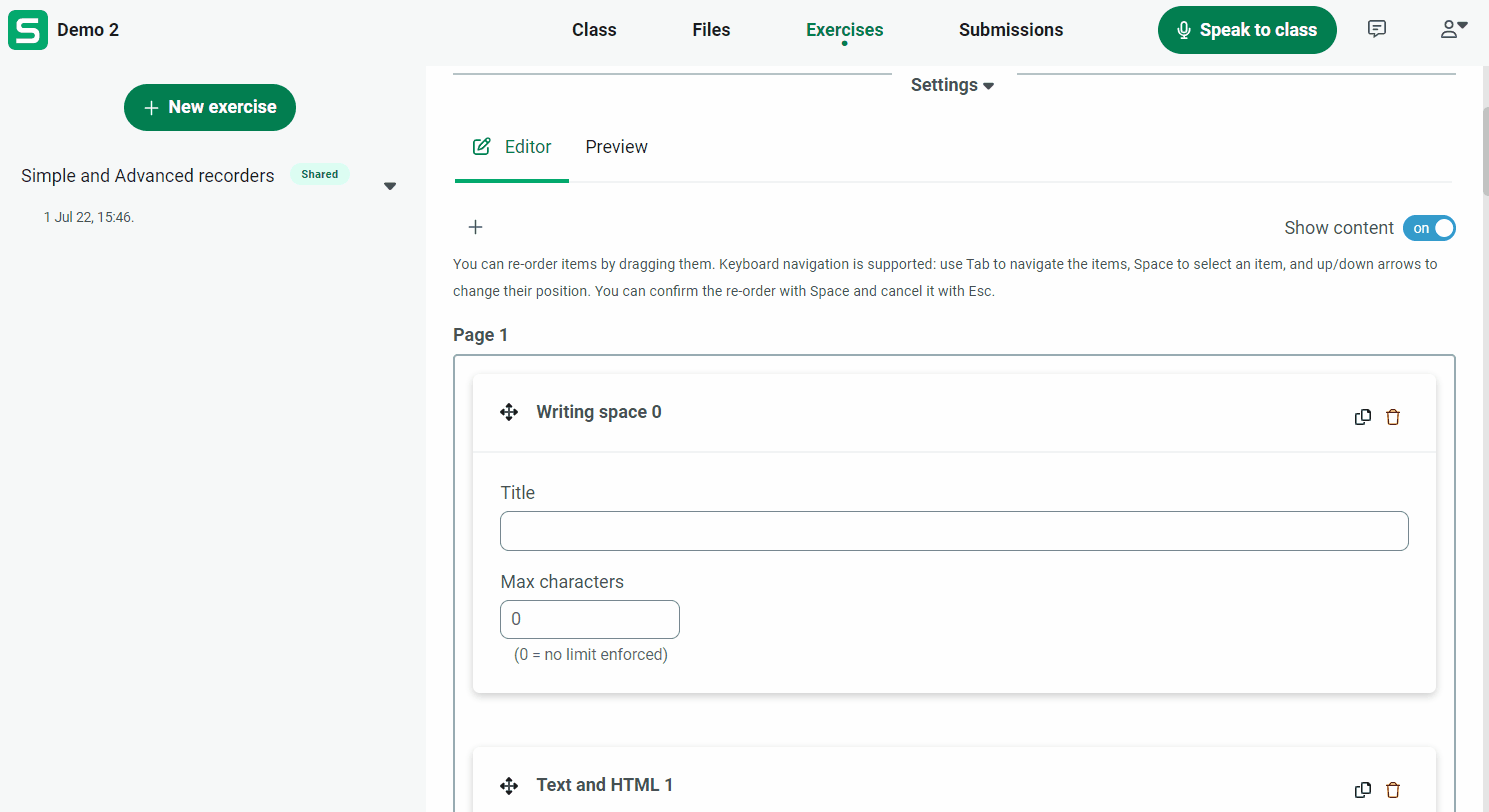 Il est possible de modifier l’ordre des différents contenus et des différentes tâches en effectuant un glisser-déposer. Le plus simple est de désactiver l’affichage du contenu en ciquant sur Show Content.