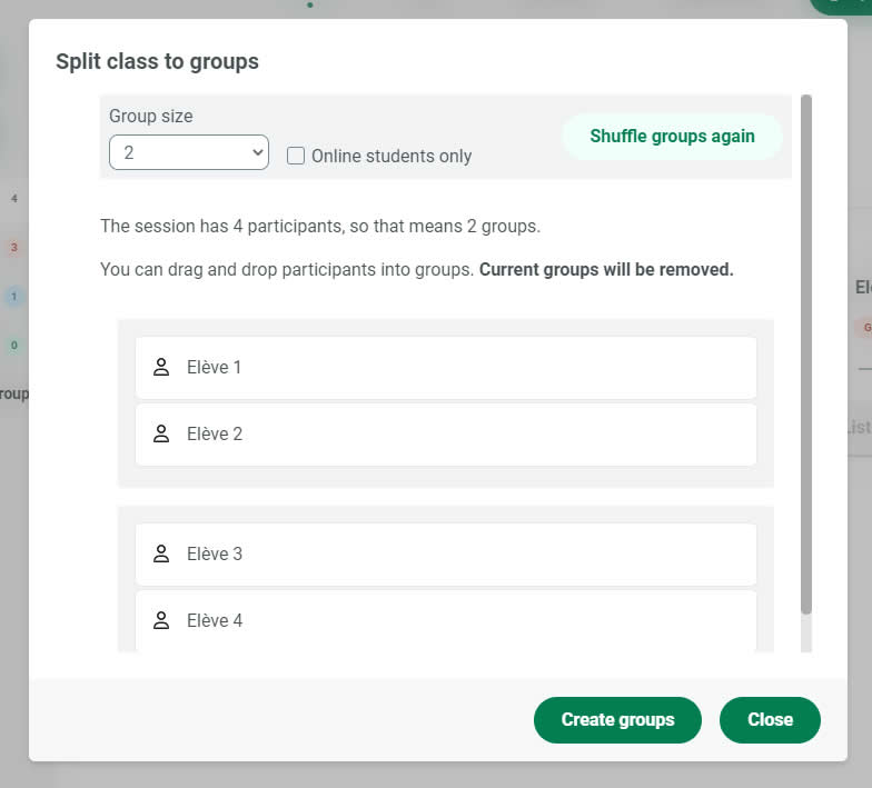 Lorsque les élèves sont répartis en Groupes, vous avez toujours la possibilité de les modifier.