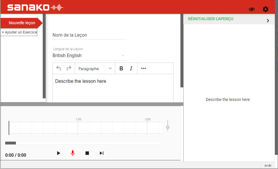 Sous le nom de la leçon, cliquez sur le lien + Ajouter un Exercice.