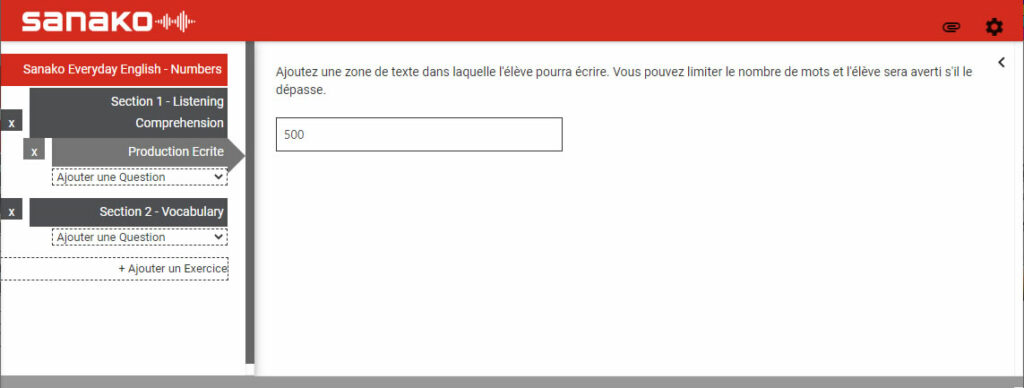 Vous pouvez limiter le nombre de mots et les élèves seront avisés si leurs textes sont trop longs.