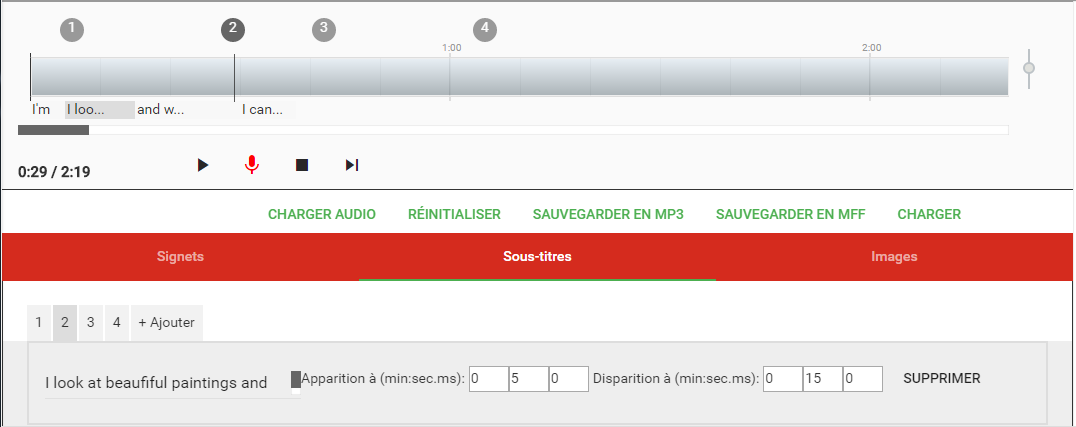 Vous pouvez définir avec précision le début et la fin de chaque sous-titre :