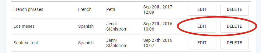 Pour éditer un exercice, cliquez sur le bouton EDITER(EDIT).