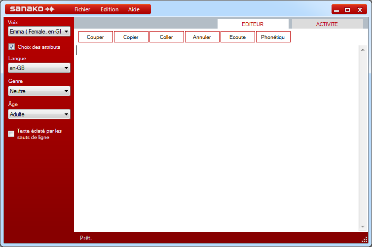 Sanako Pronounce démarre systématiquement en mode « ACTIVITÉ ». Pour créer un exercice, cliquez sur l’onglet « ÉDITEUR ».