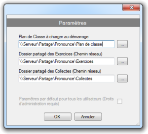 Ces paramètres sont sauvegardés pour un utilisateur particulier. Si vous désirez utiliser ces paramètres pour tous les utilisateurs, vous devez exécuter Pronounce Manager en mode Administrateur et cocher la case « Paramètres par défaut pour tous les utilisateurs ».