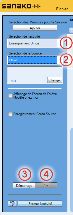 Cliquez sur le bouton Démarrage pour démarrer l’activité, l’écran de l’élève et sa voix seront transmis aux autres élèves de la session.