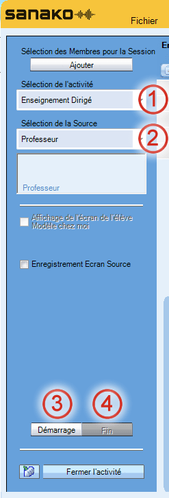 Cliquez sur le bouton Démarrage pour démarrer l’activité, l’écran de l’élève et sa voix seront transmis aux autres élèves de la session.