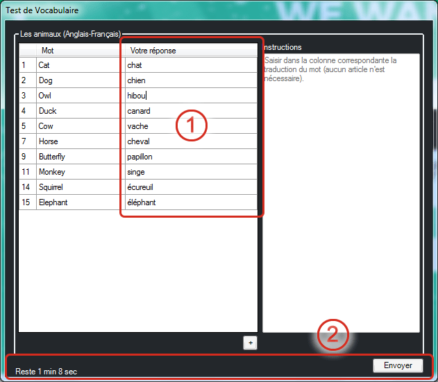 Le professeur peut cliquer sur le bouton Fin du test à tout moment pour mettre un terme à l’activité.