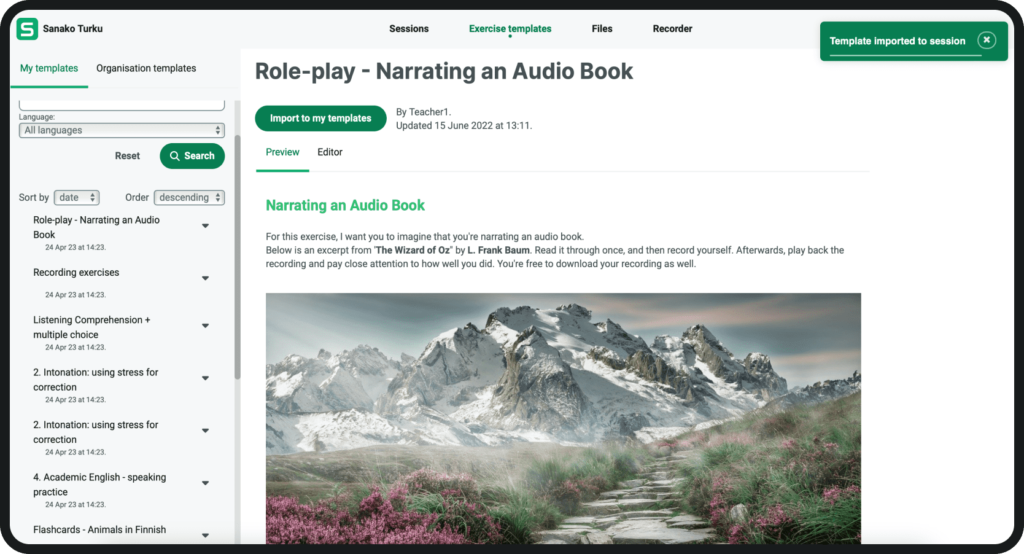 Créez des tâches interactives à l’aide de n’importe quel fichier vidéo ou audio existant et demandez à vos élèves d’effectuer un enregistrement en écoutant le modèle.